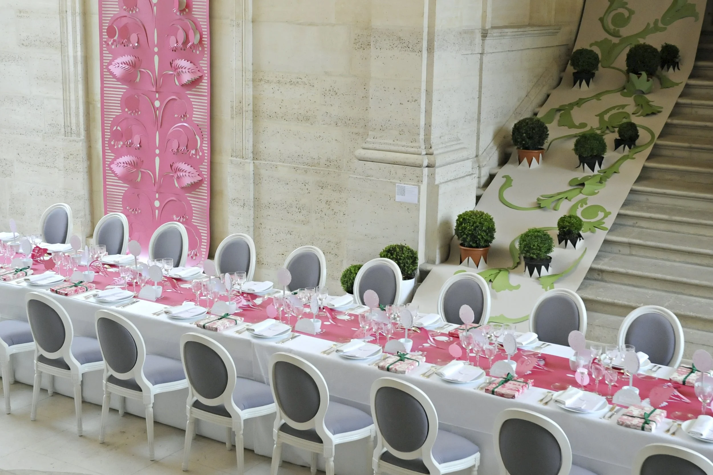 MAD celebrated its status as home to one of the oldest, most important wallpaper collections in the world with a gathering in one of the museum’s grandest spaces. The design concept was to create a dialogue between 18th century decorative arts, with pieces pulled from the MAD collection, and 21st century artists. A collaboration with paper artist Marianne Guely inspired the creative direction and decoration.